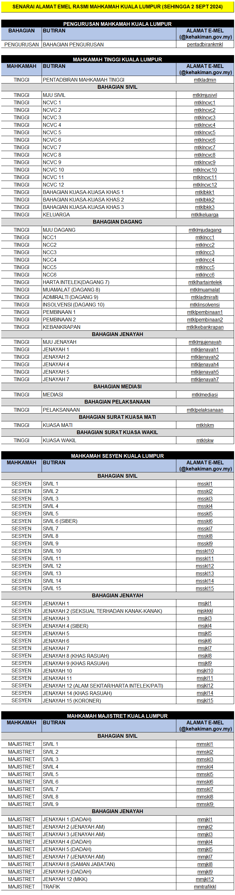 Senarai E-mel Rasmi Mahkamah Kuala Lumpur